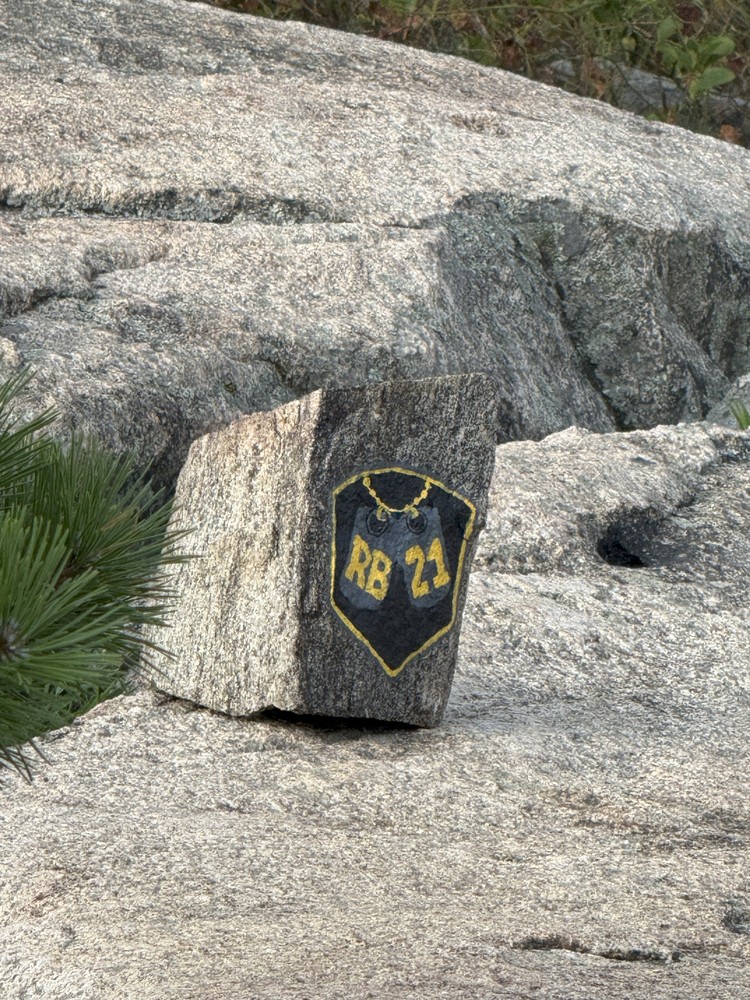 - August 16, 2025 - 14U Trail of the Fallen Hike. Players from the 14U team carried up a 15-pound rock with RB 21 painted on it to leave at the memorial site in honor of Ryan.